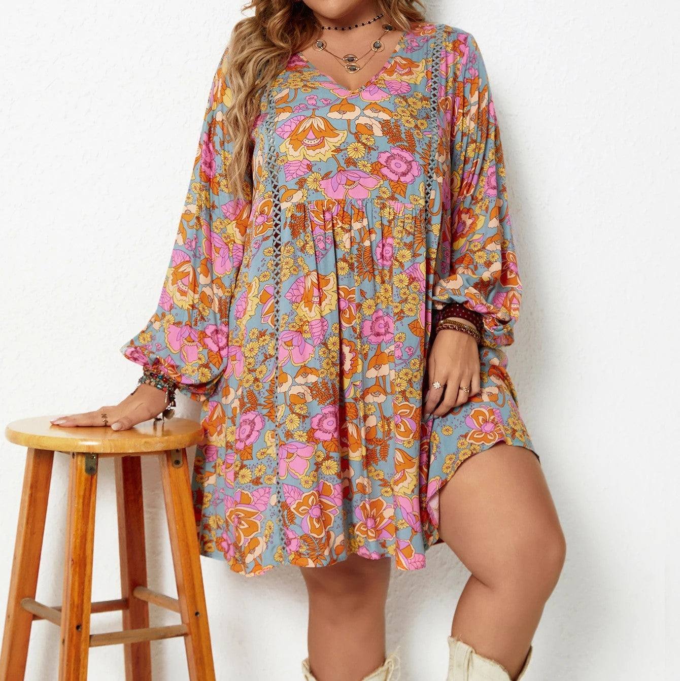 Erlebe die Farbenpracht des Sommers mit dem Bunten Blumenkleid mit V-Ausschnitt - Mia und bringe frische, lebendige Akzente in deine Garderobe. Dieses auffällige Kleid ist die perfekte Wahl für die modebewusste Frau, die einen farbenfrohen und bequemen Look sucht. Mit seinem lebendigen Blumenmuster und der lockeren Passform wird es schnell zu deinem neuen Lieblingsstück.