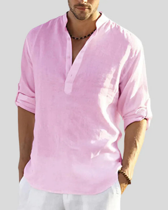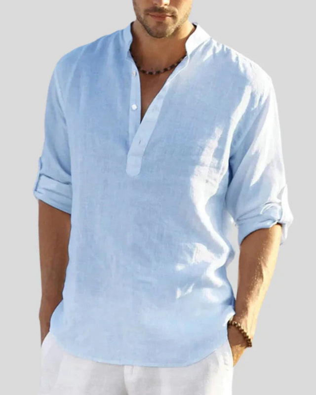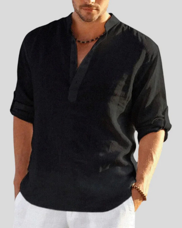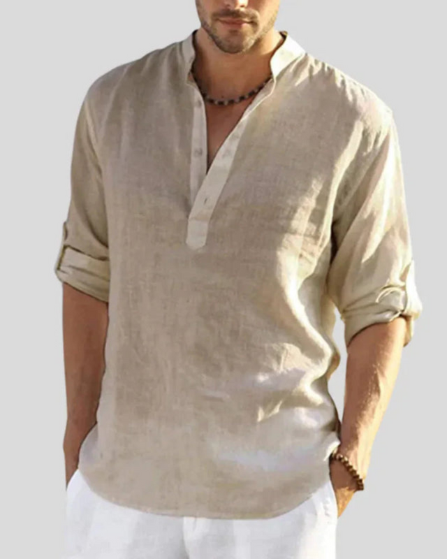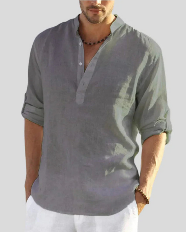 Herren Langarmhemd mit Stehkragen | Lockeres Freizeithemd mit Knöpfen
