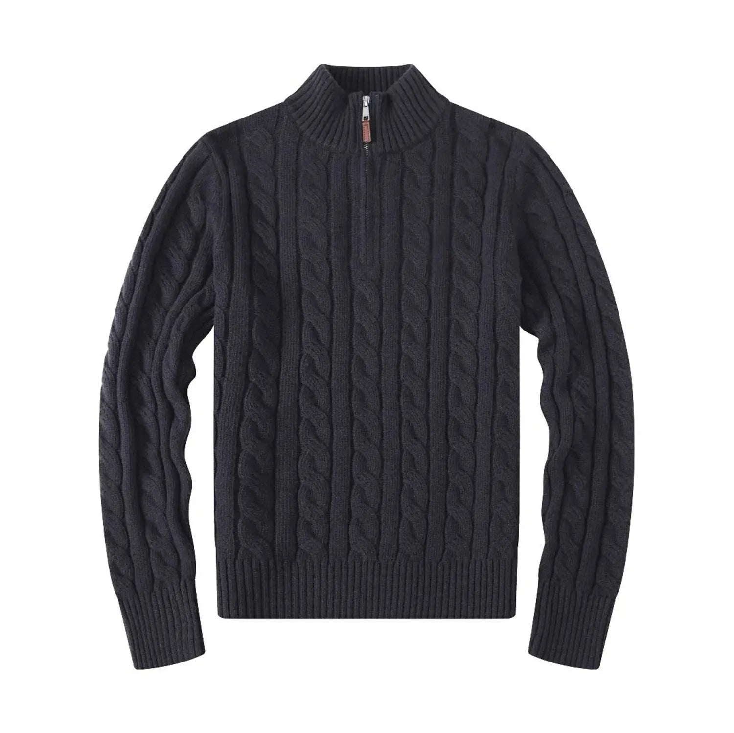 Der Mathias Herren Strickpullover mit halbem Reißverschluss ist die perfekte Wahl für kühle Tage. Sein modernes Design bietet nicht nur einen praktischen Halbreißverschluss, sondern verwandelt sich auch in einen gemütlichen Rollkragenpullover, der vielseitige Stylingmöglichkeiten und anpassbare Wärme bietet. Die dicke Strickkonstruktion mit markanten Twist-Muster-Details sorgt für eine subtile Struktur und macht ihn ideal für elegante sowie lässige Looks.